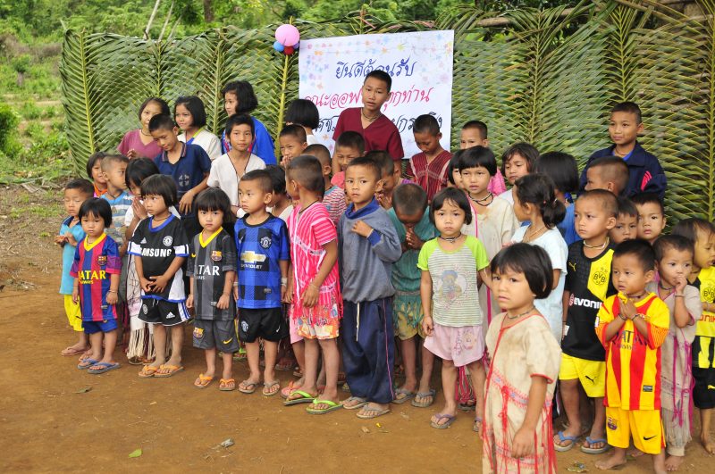 เมื่อคณะของเราเดินทางไปถึงจุดหมายนั้น มันเป็นภาพและความรู้สึกที่ประทับใจอย่างยิ่ง เมื่อชาวบ้านและเด็กนักเรียนมารอต้อนรับคณะของเราด้วยรอยยิ้มที่แสนจะอบอุ่น เราเริ่มกิจกรรมส่งมอบสิ่งของต่างๆ ตามที่วางไว้ แจกขนมเด็ก มอบอุปกรณ์การศึกษา เลี้ยงอาหารกลางวันเด็กๆ และชาวบ้านด้วยก๋วยเตี๋ยวจากทีมงานของเพื่อนพ้องกำแพงเพชรและชมรมวิทยุ VR นครสวรรค์ ซึ่งก๋วยเตี๋ยวนี้เป็นอาหารของโปรดปรานของชาวดอยจริงๆ จากนั้นเราก็แยกกันพักผ่อนกันตามอัธยาศัย ท่ามกลางอากาศที่เย็นสบายยามต้นฝน กับความสูงจากระดับน้ำทะเล 1,000 กว่าเมตรที่บ้านห้วยกระทิง