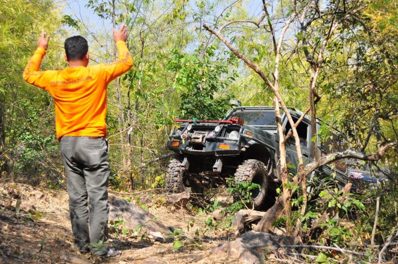 มันเป็นความโชคดีที่ไม่ค่อยชอบของคอออฟโรดที่พื้นที่นี้ค่อนข้างแห้งแล้งแล้ว ฝนหมดไปนาน ความเร้าใจกับความลื่นไหลของหินที่เบียดคราบโคลนบนล้อโตก็หายไป ความหวาดเสียวของการลื่นไถลผิดร่องไลน์ ก็ลดน้อยลง มีเพียงต้องใช้ทักษะบังคับรถคอยหลบแก้มยางจากคมหิน วางตำแหน่งล้อให้พ้นตอไม้ และวางแผนเส้นทางข้างหน้า กับเวลาในโขดหินถัดไป
