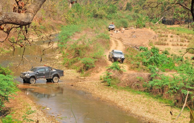 และแล้วเช้าวันที่หลายคนรอคอยก็มาถึง เสบียงพร้อม รถพร้อม สุราพร้อม เตรียมล้อหมุน ผมเองรู้สึกตื่นเต้นอีกครั้ง เพราะจะเป็นเส้นทางเข้าโดยปกติที่ผ่านๆ มา ผมวิ่งเป็นเส้นทางขาออก คาดเดาว่าน้ำจะเยอะหรือเปล่า เส้นทางจะเป็นไง จะเหมือนเดิมหรือไม่ เพราะแต่ละครั้งเส้นทางจะเปลี่ยนแปลงอยู่ตลอด อันเกิดจากน้ำป่าที่ไหลมาแต่ละปี จึงทำให้ตลิ่งพังเส้นทางเปลี่ยนแปลงตลอด….