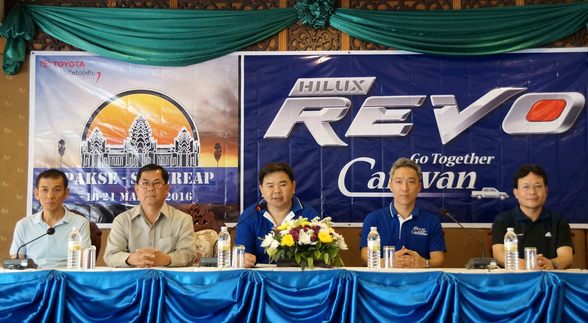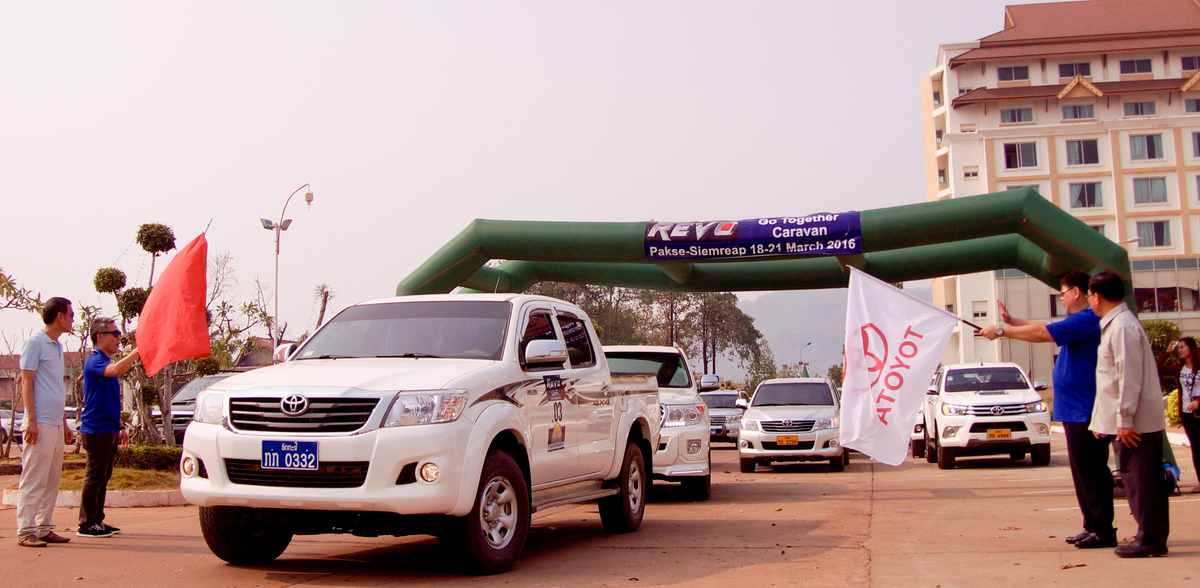 สำนักเขตภูมิภาคแม่น้ำโขง บริษัท โตโยต้า มอเตอร์ ประเทศไทย จำกัด , ฝ่ายปฏิบัติการสายงานย่อยเขตภูมิภาคแม่น้ำโขง1และ 2 บริษัท โตโยต้า มอเตอร์ ประเทศไทย จำกัด ร่วมกับศูนย์รถยนต์โตโยต้า ปากเซ , สะหวันนะเขต และเวียงจันทร์  สปป.ลาว จัดคาราวานรถยนต์โตโยต้าท่องเที่ยวแดนดินสิ่งมหัศจรรย์ระดับโลกสองประเทศในสปป.ลาว ,กัมพูชา และเดินทางวนกลับผ่านประเทศไทยรายการ “LAOS TOYOTA REVO CARAVAN  TO SIEM REAP CAMBODIA 2016” ระหว่างวันที่ 18 – 21 มีนาคม 2016  เส้นทางปากเซ – น้ำตกคอนพะเพ็ง-ทะเลสาปโตนเล – สตรึงแตรง – เสียบเรียบ – นครวัด – นครธม – ตาพรม – บายน – ด่านช่องสะงำ – ด่านช่องเม็ก – ด่านวังเตา – ปากเซ” ซึ่งการเดินทางดูแลและอำนวยความสะดวกโดยบริษัท ทรานเอเซียรู้ท จำกัด จากประเทศไทย