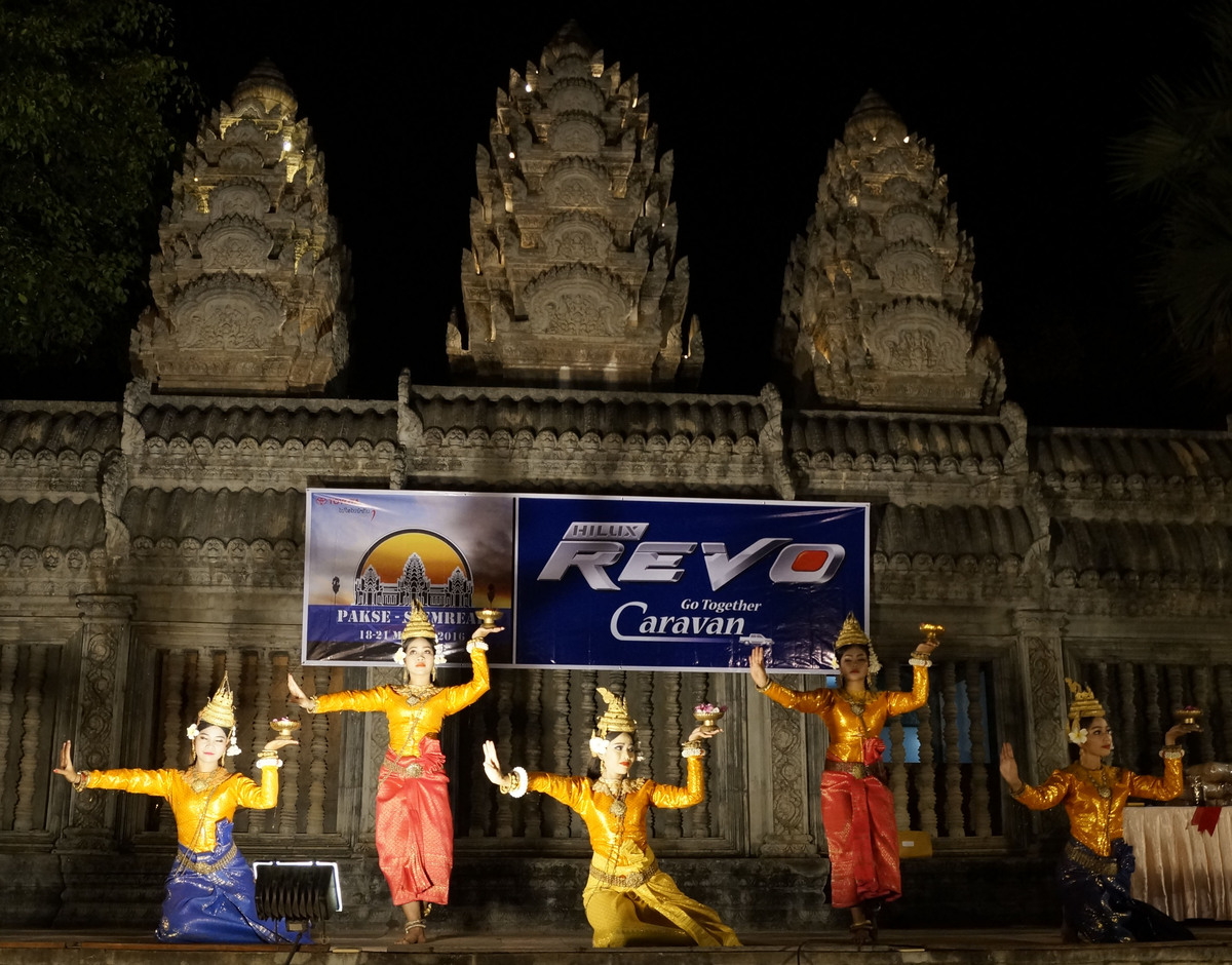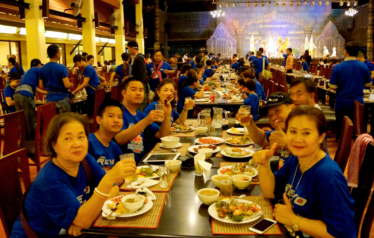 เวลาประมาณ 18.00 น. เริ่มต้นงานเลี้ยงที่โรงแรม City Angkor มีผู้บริหารของโตโยต้าจากประเทศไทย , สปป.ลาวและกัมพูชา มาร่วมสนุกสนานอย่างเป็นกันเองกับชาวคาราวานโตโยต้าสปป.ลาวอาทิเช่น คุณวิเชียร เอมประเสริฐสุข ประธานบริหาร สำนักเขตภูมิภาคแม่น้ำโขง บ.โตโยต้า มอเตอร์ ประเทศไทย จำกัด , คุณปกรณ์ วงศ์วิทยาภิรมณ์ ประธานฝ่ายปฏิบัติการสายงานย่อยเขตภูมิภาคแม่น้ำโขง1 บ.โตโยต้า มอเตอร์ ประเทศไทย จำกัด , คุณนิกร ประเสริฐสม ประธานฝ่ายปฏิบัติการ สายงานย่อยเขตภูมิภาคแม่น้ำโขง2 บ.โตโยต้า มอเตอร์ ประเทศไทย จำกัด, คุณสหชาติ กังศศิเทียม ผู้อำนวยการฝ่ายปฎิบัติการเขตภูมิภาค สำนักงานเขตภูมิภาคแม่น้ำโขง บริษัท โตโยต้า มอเตอร์ ประเทศไทย จำกัด, Mr. Masaaki Kawabata President Toyota Cambodia Co. Ltd. และ Mr. Yosuke Suzuki  General Manager, Corporate Planning Division, Toyota Cambodia Co. Ltd. ซึ่งคืนนี้ทุกคนต่างอิ่มอร่อยกับอาหารและสบายใจสุขใจกับ การแสดงศิลปร่ายรำสวยงามกัมพูชา ดนตรีโฟคซองสบายหู สนุกสนานหัวเราะถูกใจกับการเล่นเกมส์แจกของรางวัลน้ำใจของโตโยต้าจัดมาให้ และหลายคนสุดเหวี่ยงกับการสังสรรค์เฮฮากัน ส่งท้ายการท่องเที่ยวชนแก้วกันดุดันมันส์ถึงใจจริงๆจนดึก!