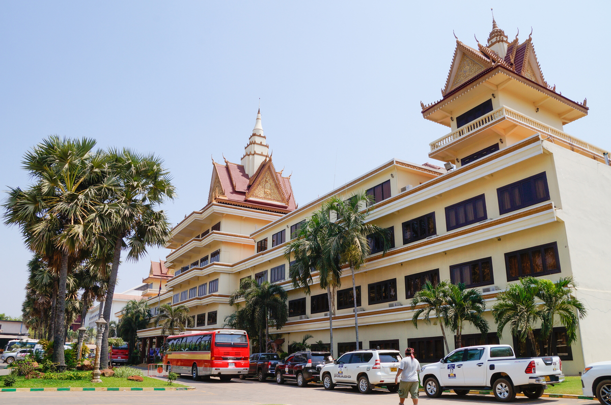 วันที่ 19/3/16 หลังจากรับประทานอาหารเช้าที่ Suntha Restaurant & Guest House คาราวานทั้งสองกลุ่มได้เดินทางมุ่งหน้าเมืองเสียมเรียบ(Siem Reap) ซึ่งอยู่ทางด้านตะวันตกเฉียงเหนือของประเทศกัมพูชา ห่างจากเมืองหลวงพนมเปญประมาณ 314 ก.ม. อยู่บนริมฝั่งทะเลสาปโตนเล และเป็นที่ตั้งของนครวัด(Angkor Wat)และกลุ่มปราสาทหินนครธม กลุ่มคาราวานทั้งสองกลุ่มใช้เวลาประมาณสี่ชั่วโมง บนเส้นทางถนนลาดยางสองเลนสภาพดี แต่มีรถยนต์บนเส้นทางจำนวนมาก ทำให้การเดินทางท่องเที่ยวแบบหมู่คณะไปได้ไม่รวดเร็ว ถึงแม้นจะมีรถตำรวจกัมพูชามานำคาราวานช่วงในเมือง ก็ยังต้องเจอทั้งความชุลมุลวุ่นวายของผู้ใช้รถยนต์ชาวกัมพูชา และจุดทางแยกที่มีไฟบังคับสัญญาณจราจรหลายแห่ง คาราวานจึงถูกตัดขาดออกเป็นช่วงๆ แต่นักขับรถยนต์ท่องเที่ยวโตโยต้าสปป.ลาวทุกคน สามารถมาถึงที่พักโรงแรม City Angkor ได้ครบทั้งสองกลุ่ม ซึ่งทั้งหมดได้รับการต้อนรับจากคณะกลองยาวและมีเครื่องดื่มพร้อมผ้าขะม้ากัมพูชาสวยงามคล้องคอเป็นของที่ระลึก รวมทั้งรับประทานอาหารกลางวันกันที่โรงแรมอย่างเต็มอิ่ม