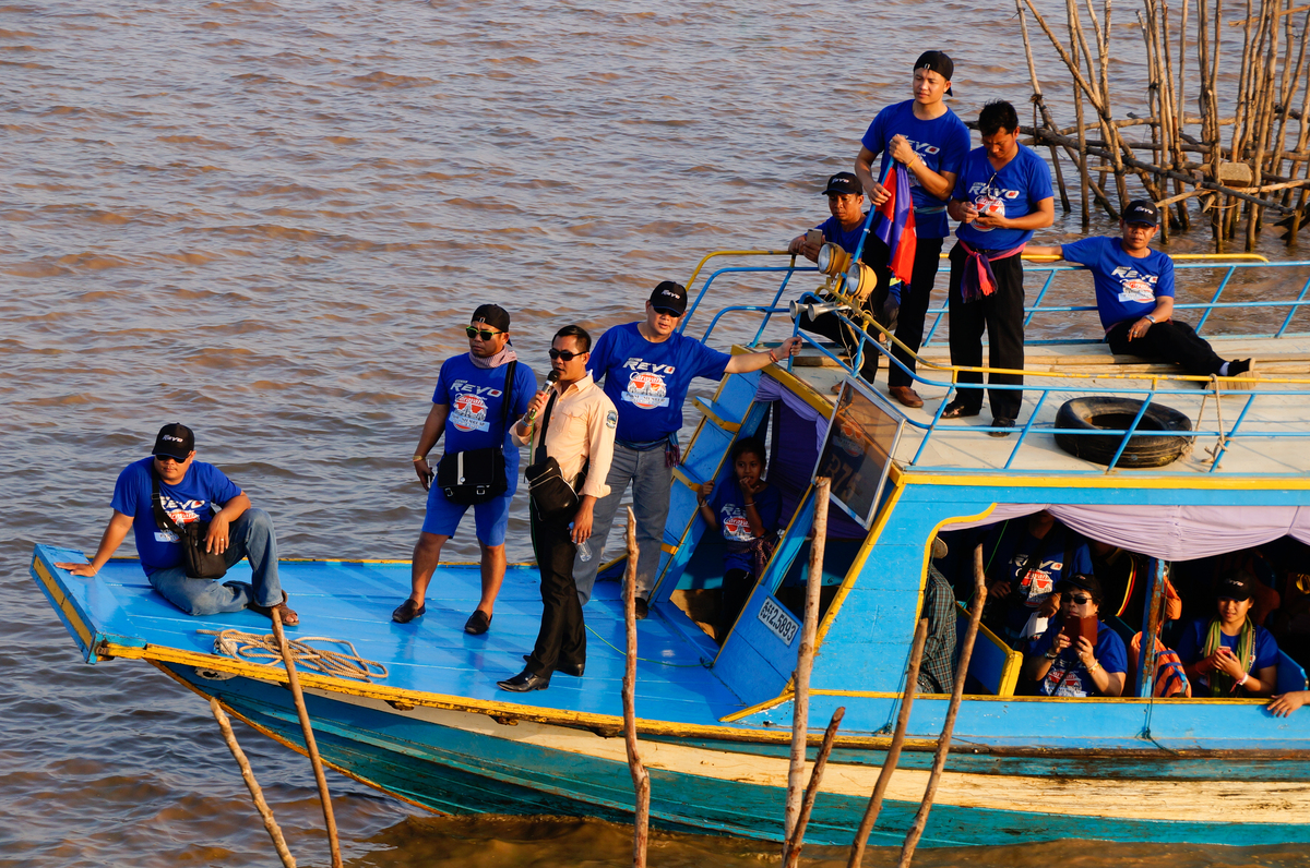 ต่อมาคณะคาราวานได้เดินทางไปท่องเที่ยวลงล่องเรือ ท่องเที่ยวชมทะเลสาปโตนเล ซึ่งเป็นทะเลสาปน้ำจืดที่ใหญ่ที่สุดในแถบเอเซีย มีความกว้างใหญ่ขนาด 7,500 ตารางกิโลเมตร หรือ ใหญ่กว่ากรุงเทพฯประมาณ 7เท่า ความลึกโดยเฉลี่ย 10 เมตร ฤดูฝนน้ำหลากจะมีน้ำมากกว้างขึ้นถึง 6 เท่า มีปลาน้ำจืดชุกชุมถึงประมาณ 300 ชนิด และยังมีวิถีชีวิตชาวประมงริมทะเลสาป และชาวบ้านที่ปลูกบ้านเรือนเป็นแพลอยอยู่ในทะเลสาป กลายเป็นชุมชนเล็กๆ มีทั้งโบสถ์,โรงเรียน และปั้มน้ำมัน ส่วนใหญ่ล้วนเป็นชาวเวียดนามที่หลังเสร็จศึกสงคราม ไม่ยอมกลับประเทศ อยู่กันจนมีลูกหลานมีทั้งเกิดและตายในกัมพูชาหลายคน ภาพทิวทัศน์สวยงามยามเย็น ดูกว้างจนสุดลูกตาเหมือนทะเลเวิ้งว้าง ทำให้เป็นภาพน่าประทับในการล่องเรือเที่ยวทะเลสาปโตนเล และช่วงค่ำคณะคาราวานนักท่องเที่ยวโตโยต้าสปป.ลาว อร่อยอิ่มพุงกับอาหารบุฟเฟ่กัมพูชาที่ภัตตาคาร Tonle Mekong Resturant รสชาดแบบเดียวกับอาหารไทยแทบไม่มีเพี้ยน พร้อมเพลิดเพลินการแสดงศิลปวัฒนธรรมกัมพูชา ดูสวยงามตลอดเวลา