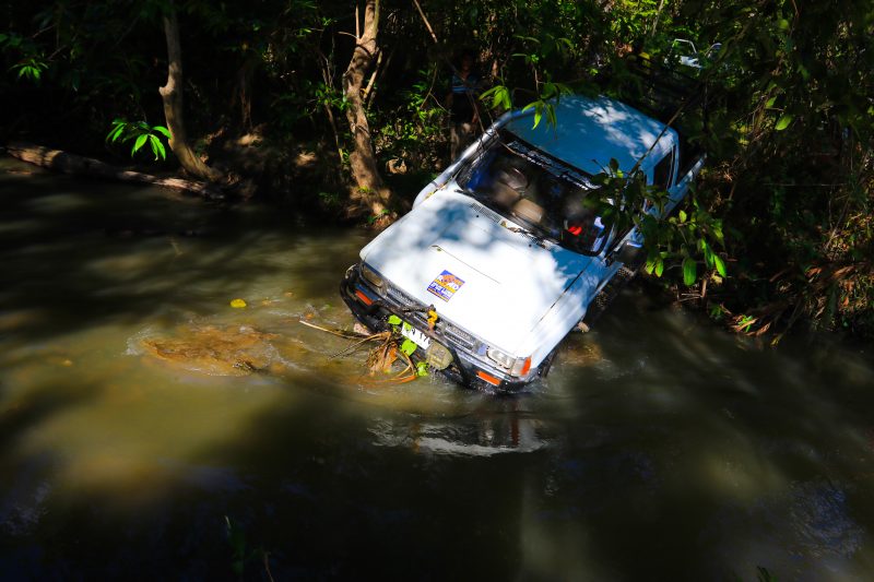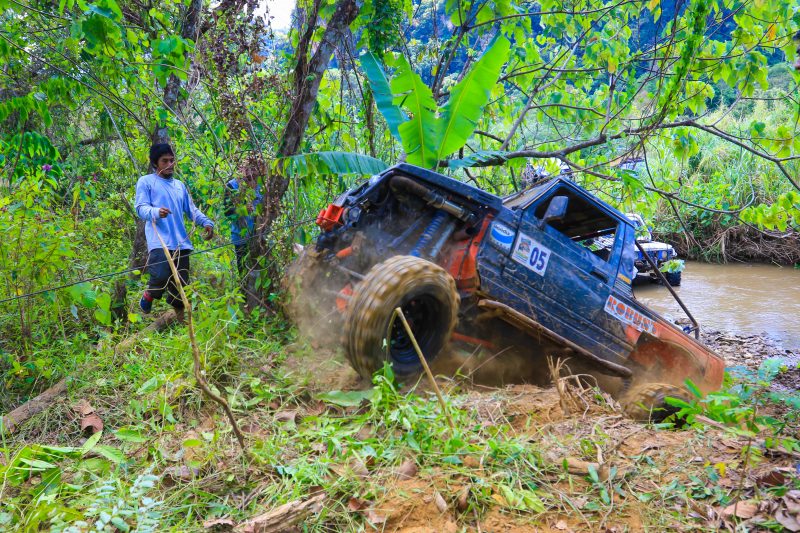 บางช่วงน้ำค่อนข้างลึก ก็ต้องขับตัดขึ้นฝั่งที่ค่อนข้างลาดชัน และเป็นดินทราย นั่นทำให้รถหลายๆ คันต้องงัดวินช์มาใช้กันเป็นแถว