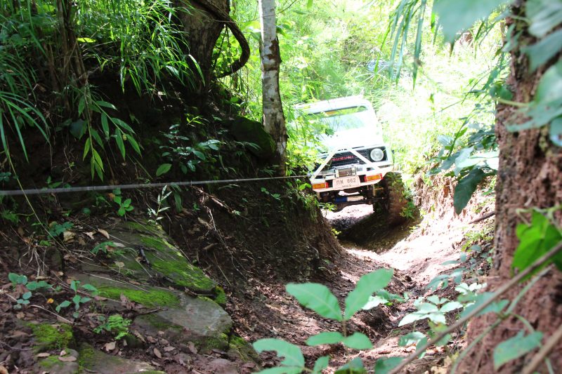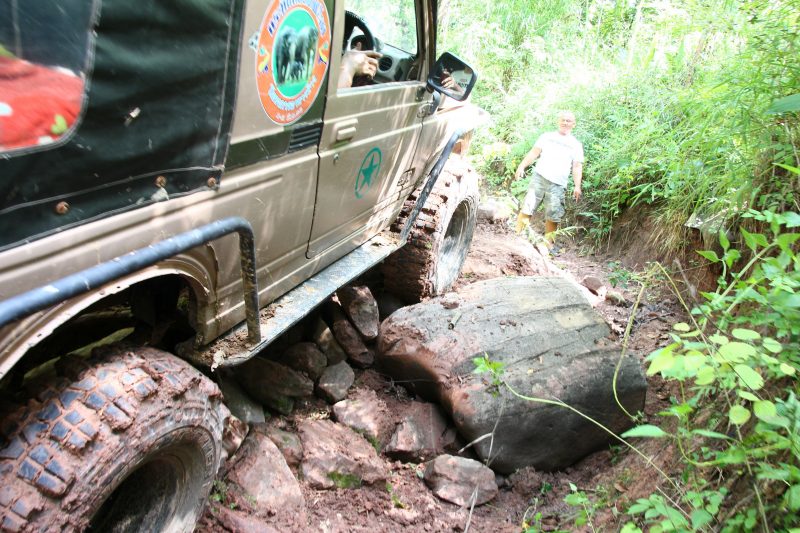 ส่วนเจ้ามังกรแดง จากอู่ดิส เซอร์วิส  สกลนคร ยังไม่ทิ้งลายมือหนึ่งของสกลนคร  ลีลายังดีทั้งๆ ที่ไปหลอกสาวลาว มาเป็นคู่ชีวิตสำเร็จทั้งคืน (อิอิ…) แต่ช่วงล่างกว้างๆ ของซาฟารี บนกระดองซูซูกิ มันสร้างความลำบากให้เขาพอสมควรกับช่องแคบๆ แบบนี้ และที่เด็ดกว่านั้นเราสามารถหลอกล่อเอานักขับออฟโรดมือดีของ สปป.ลาว คือ อ้ายต๊ะ  และอ้ายอึ่ง มาเป็นเด็กลากวินซ์ จนจบทริปแบบสะใจไปเลย เพราะเห็นว่าไป RFC มาแล้ว 2 ครั้ง ใช้จนคุ้ม แต่ทริปหน้า  ไปนครเวียงจันทร์  ก็ตัวใครตัวมันนะครับ พี่อ๊อด