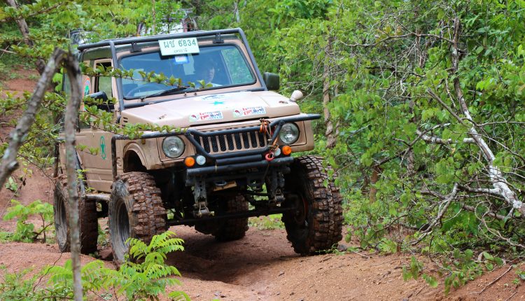 ผืนป่าแห่งนี้ เป็นเขตป่าชุมชนที่นับว่าอุดมสมบูรณ์มากพอสมควร เพราะจะเห็นแต่การเลี้ยงสัตว์ของชาวบ้านเท่านั้นที่ใช้บริการป่าผืนนี้ การบุกรุกทำกินลึกเข้าไปในป่าไม่ค่อยเห็น นับเป็นการทำงานของเจ้าหน้าที่ที่น่ายกย่อง  เราใช้เวลาเดินทางตามร่องเขา สูงบ้าง ต่ำบ้าง หลบต้นไม้ ก้อนหินเล็กใหญ่ กว่า 2 ชั่วโมง ก็มาถึงสะพานหินที่คอยดักล้อขนาด 35 นิ้วไว้อยู่หมัด ต้องออกกำลังกันอีกครั้ง  และ…รอดทุกคัน!!  ค่อย มุดป่า คล่อมตอ หินลอยเป็นช่วงๆ กว่า 1 ชั่วโมง ความเหนื่อยล้าจากการเดินทางมาจากบ้านเมื่อเช้า เล่นเอาผมง่วงมาทันที ยังดีที่มี  อ้ายอึ่ง จาก สปป.ลาว ดีกรีผ่านสังเวียน  RFC 2014 ที่เวียดนามมาหมาดๆ นั่งเป็น  Co-Driver ให้