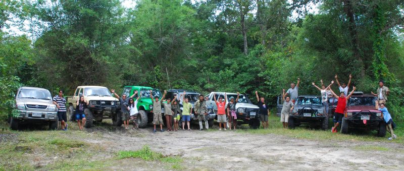พวกเรารวมตัวกันที่จุดนัดหมายที่บ้านหลังเล็กๆ ท่ามกลางต้นไม้ ร่มรื่น กลางไร่ของ บอลล์   ( ไพชยนต์ วงศ์ชอุ่ม ) พร้อมกับเพื่อนๆ กลุ่ม  JEEP UNITY CLUB (โคกกรวด)  ซึ่งเป็นผู้ชักชวน และประสานงานขออนุญาตเข้าพื้นที่อย่างเป็นทางการ  พวกเราจัดขบวนมุ่งหน้าสู่หน่วยพิทักษ์อุทยานแห่งชาติเขาใหญ่( ขญ.11 คลองเพกา)  เพื่อรับเจ้าหน้าที่ของอุทยานฯ ซึ่งจะเดินทางไปกับเราด้วย ตามกฎระเบียบ และเพื่ออำนวยความสะดวกในการนำทางท่องเที่ยว ซึ่งเราก็สบายใจด้วย เพราะเจ้าหน้าเขาจะได้เห็นว่า การที่เราเดินทางเข้าไปท่องเที่ยวนั้น ก็เพื่อสันทนาการและพักผ่อนหย่อนใจจริงๆ มิได้มัเจตนาอะไรแอบแฝง หรือเข้าไปขับรถเที่ยวเพื่อความสนุก สะใจ