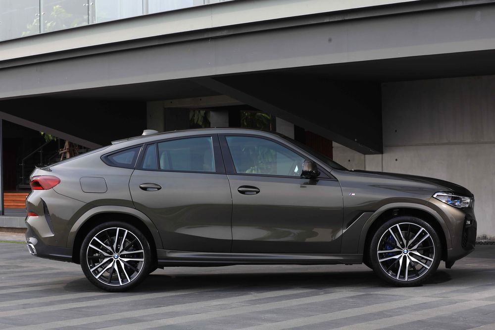 ด้านข้างตัวรถคงไว้ซึ่งสัดส่วนที่คุ้นเคยกันดีของบีเอ็มดับเบิลยูด้วยเส้นสายลากผ่านซึ่งระบุถึงตัวตนได้อย่างชัดเจนและหลังคาที่ทำองศาโค้งอย่างปราดเปรียว ล้ออัลลอย M ลาย Double Spoke น้ำหนักเบา ขนาด 22 นิ้ว มาพร้อมกับซุ้มล้อทรงแปดเหลี่ยมมน ส่วนช่องระบายอากาศสีเดียวกับตัวถังผสมผสานเข้ากับซุ้มล้อที่โดดเด่น เน้นย้ำรูปลักษณ์ภายนอกให้ปราดเปรียวยิ่งขึ้น ส่วนท้ายรถของบีเอ็มดับเบิลยู X6 ใหม่ มอบเค้าโครงอันแข็งแกร่งด้วยเส้นสายตัวถังที่ทรงพลัง เสริมความกำยำบึกบึนด้วยไฟท้าย LED ขนาดกว้างรูปตัว L ส่วนประตูท้ายรถผสานอย่างไร้รอยต่อเป็นหนึ่งเดียวกับเส้นแนวขวางของตัวถังจนแทบมองไม่เห็น