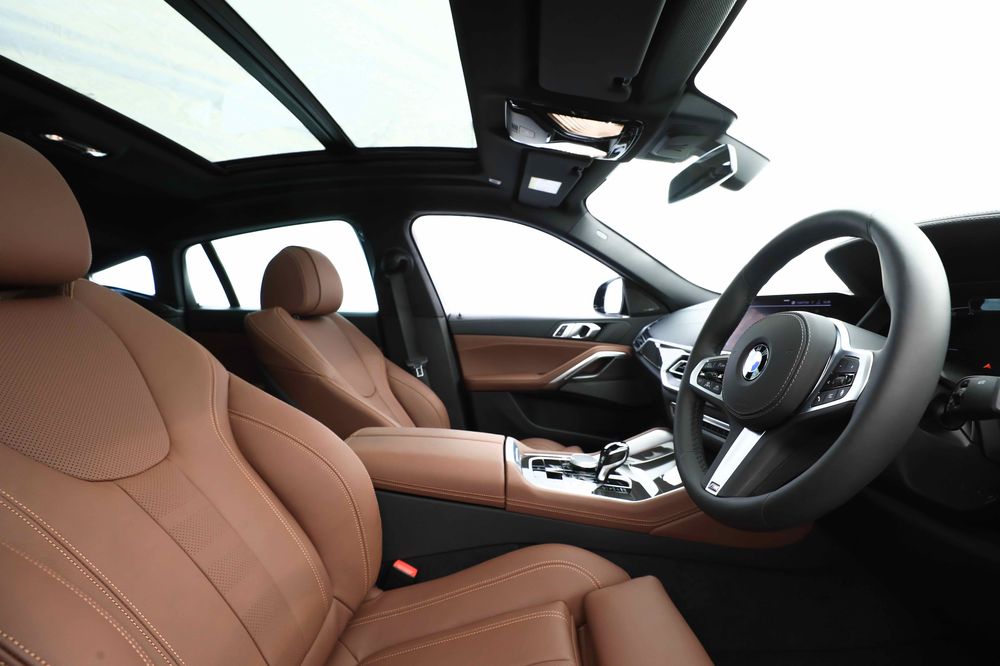 ภายในห้องผู้โดยสารของบีเอ็มดับเบิลยู X6 ใหม่ มอบประสบการณ์การขับขี่ที่เอ็กซ์คลูซีฟและปราดเปรียวยิ่งขึ้น ดีไซน์บริเวณที่นั่งคนขับมาพร้อมกับการจัดวางแผงควบคุมแบบใหม่ที่ตอบรับกับปรัชญาอันโดดเด่นของบีเอ็มดับเบิลยูซึ่งคำนึงถึงผู้ขับขี่เป็นสำคัญ นอกจากนี้การออกแบบเบาะที่นั่งให้สูงขึ้นยังช่วยให้ผู้ขับสามารถตรวจสอบทุกการขับขี่ได้อย่างครอบคลุมที่สุดอีกด้วย ด้านแพ็คเกจชุดแต่ง M Sport เสริมมาดความปราดเปรียวของบีเอ็มดับเบิลยู X6 ใหม่ ด้วยพวงมาลัย M Sport คันเร่ง M-specific ภายในตกแต่งด้วยวัสดุคาร์บอนไฟเบอร์ เพดานหลังคาภายในสี Anthracite นอกจากนี้ยังมอบการใช้งานที่หลากหลายด้วยพนักพิงเบาะหลังแบ่งพับแบบ 40:20:40 ซึ่งสามารถพับเก็บเพื่อเพิ่มความจุของพื้นที่จากเดิม 580 ลิตร เป็น 1,530 ลิตร สำหรับอุปกรณ์เสริมไฮไลท์อื่นๆ ได้แก่ ฟังก์ชั่นสั่งงานระบบ iDrive ด้วยการเคลื่อนไหวมือ BMW Gesture Control ที่วางแก้วน้ำปรับอุณภูมิพร้อมการชาร์จแบบไร้สาย หลังคากระจกแบบ Panorama และระบบเครื่องเสียงรอบทิศทาง Harman Kardon