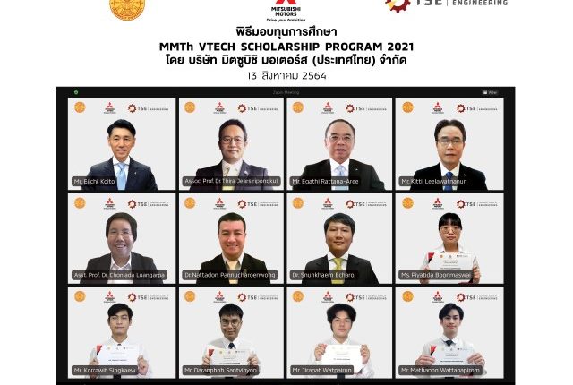 บริษัท มิตซูบิชิ มอเตอร์ส (ประเทศไทย) จำกัด นำโดย มร. เออิอิชิ โคอิโตะ กรรมการผู้จัดการใหญ่ (แถวบน ซ้ายสุด) จัดพิธีมอบทุนการศึกษาในโครงการ “MMTh VTECH Scholarship Program 2021” ให้กับ 5 นักศึกษา จากคณะวิศวกรรมศาสตร์ สาขาวิศวกรรมเทคโนโลยียานยนต์ มหาวิทยาลัยธรรมศาสตร์ ศูนย์พัทยา โดยมี รศ.ดร. ธีร เจียศิริพงษ์กุล คณบดี คณะวิศวกรรมศาสตร์ มหาวิทยาลัย ธรรมศาสตร์ คณาจารย์ และผู้บริหารจาก มิตซูบิชิ มอเตอร์ส ประเทศไทย ร่วมแสดงความยินดีในพิธีมอบทุนการศึกษาแบบนิวนอร์มอล โดยนักศึกษาจะได้รับทุนการศึกษาต่อเนื่องจำนวน 2 ปี พร้อมโอกาสในการฝึกงานและเข้าร่วมเป็นพนักงานประจำกับ มิตซูบิชิ มอเตอร์ส ประเทศไทย ผู้ผลิตรถยนต์ ชั้นนำระดับโลก ตั้งเป้าสร้าง “บัณฑิตพันธุ์ใหม่” ด้านวิศวกรรมยานยนต์ เพื่อการขับเคลื่อนและพัฒนาอุตสาหกรรมยานยนต์ไทยให้ก้าวหน้าต่อไปในอนาคต
