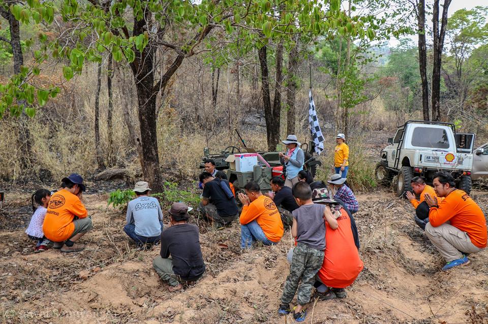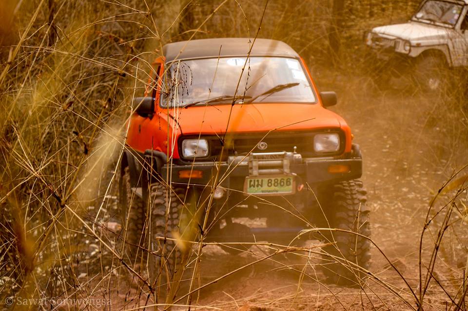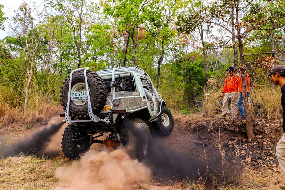 ผมได้มีโอกาสสอบถามสมาชิกใหม่ที่ร่วมเดินทางครั้งแรก เขาว่า “พี่ผมกลับได้ไหม” ด้วยอากาศที่ร้อนบวกกับเส้นทางแค่จุดแรกกินเวลาไปกว่าครึ่งวัน มันก็เลยบั่นทอนจิตใจของสมาชิกใหม่พอสมควร แต่จากความร่วมแรงร่วมใจของทุกคน ทำให้เราผ่านอุปสรรคต่างๆ มาได้ จนมาพักทานอาหารกลางวันในอีกไม่กี่อึดใจต่อมา และเดินทางต่อไปยังจุดที่ 2 ซึ่งต่างจากจุดแรกคือ เป็นทางขึ้น-ลงเขาชัน ซึ่งจุดนี้เล่นเอาถึงกับเหงื่อไหลเป็นทางกันทีเดียว ปัญหาหลักของจุดนี้คือ ตรงยอดเนินที่จะขึ้นจะเป็นหลุมสลับ ช่วงล่างจะบิดเป็นตัว X รถที่ช่วงล่างยีด-ยุบ ไม่ดี ก็ต้องใช้วินช์ดึงขึ้นไปแทน เพราะไม่อยากแลกกับความเสียหายที่จะเกิดขึ้นได้โดยไม่คาดฝัน แต่ละคันก็ผ่านไปได้ด้วยดี