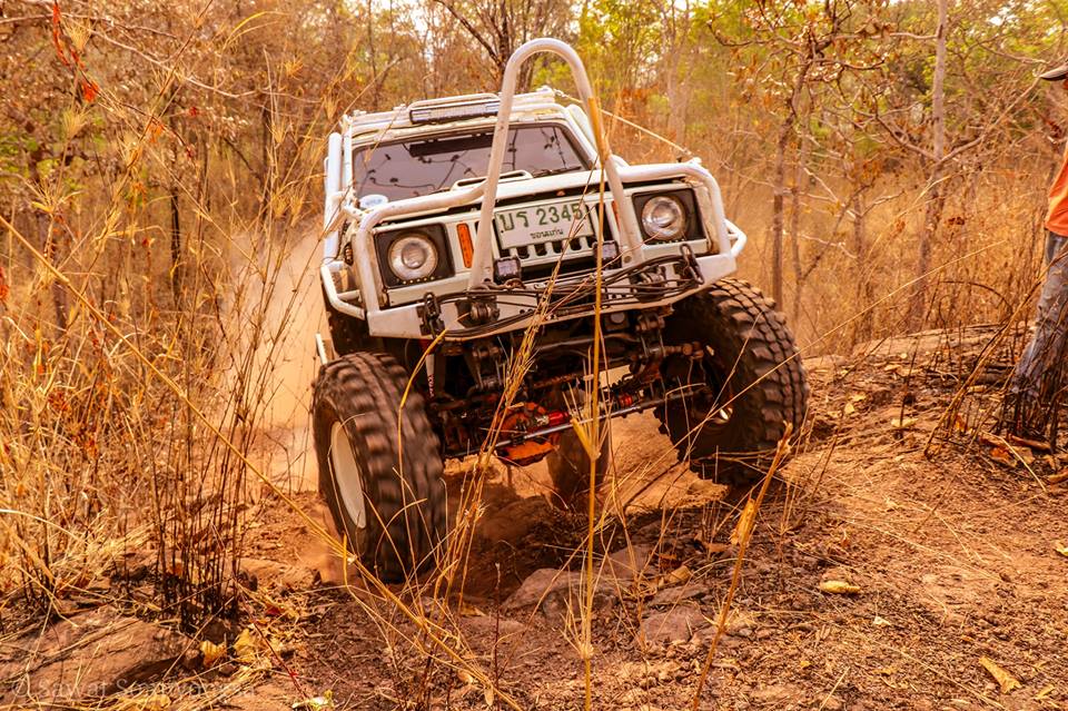 ผมได้มีโอกาสสอบถามสมาชิกใหม่ที่ร่วมเดินทางครั้งแรก เขาว่า “พี่ผมกลับได้ไหม” ด้วยอากาศที่ร้อนบวกกับเส้นทางแค่จุดแรกกินเวลาไปกว่าครึ่งวัน มันก็เลยบั่นทอนจิตใจของสมาชิกใหม่พอสมควร แต่จากความร่วมแรงร่วมใจของทุกคน ทำให้เราผ่านอุปสรรคต่างๆ มาได้ จนมาพักทานอาหารกลางวันในอีกไม่กี่อึดใจต่อมา และเดินทางต่อไปยังจุดที่ 2 ซึ่งต่างจากจุดแรกคือ เป็นทางขึ้น-ลงเขาชัน ซึ่งจุดนี้เล่นเอาถึงกับเหงื่อไหลเป็นทางกันทีเดียว ปัญหาหลักของจุดนี้คือ ตรงยอดเนินที่จะขึ้นจะเป็นหลุมสลับ ช่วงล่างจะบิดเป็นตัว X รถที่ช่วงล่างยีด-ยุบ ไม่ดี ก็ต้องใช้วินช์ดึงขึ้นไปแทน เพราะไม่อยากแลกกับความเสียหายที่จะเกิดขึ้นได้โดยไม่คาดฝัน แต่ละคันก็ผ่านไปได้ด้วยดี