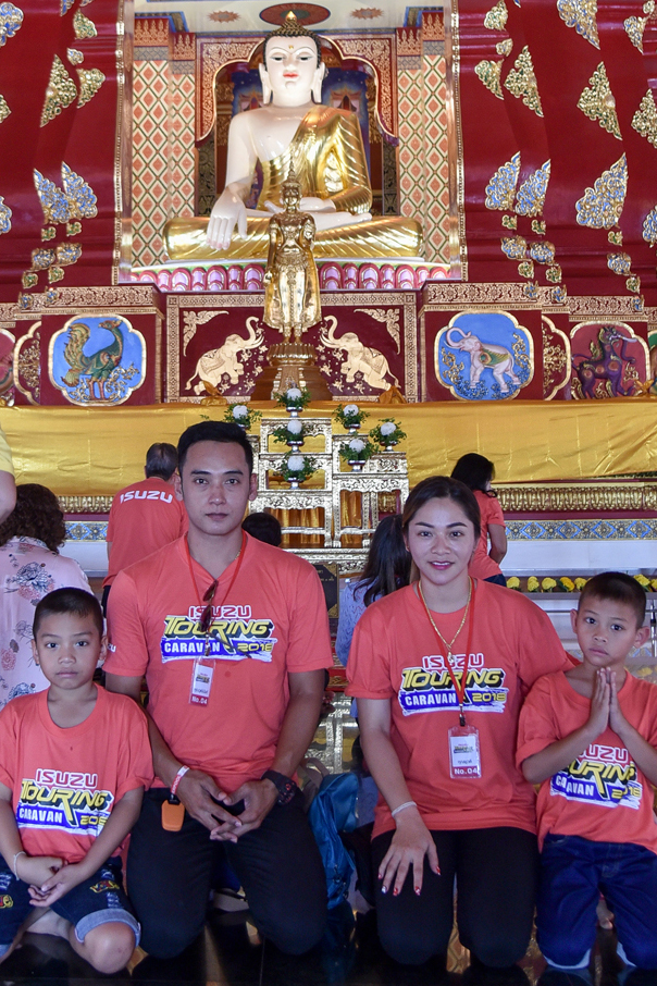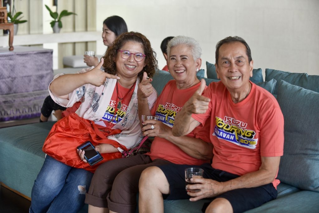 ครอบครัวของรถหมายเลข 19 ที่มีผู้อาวุโสที่สุดในขบวน แต่อายุมิได้เป็นอุปสรรคใดๆ ซึ่งคุณไพรัตน์ สุขขาว เผยว่า “การเที่ยวกับครอบครัวแบบนี้ เป็นการสร้างความสุข เรามาเที่ยวกันบ่อย มากับคาราวานอีซูซุหลายครั้ง ไม่เคยผิดหวังเลย ทริปนี้ประทับใจสะพานแขวนเขาเทพพิทักษ์ แปลกตาดี ได้ทำบุญที่วัดมหาธาตุ วชิรมงคลด้วย มีความสุขมากครับ”