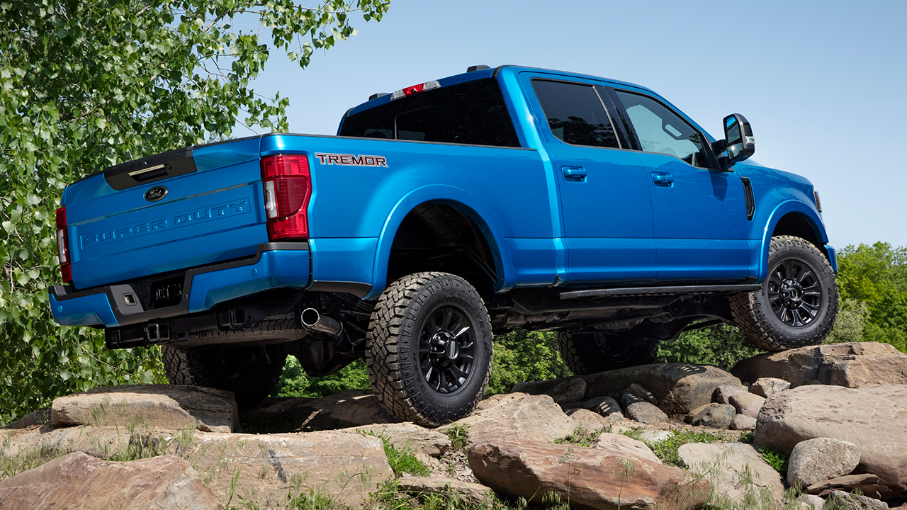 Super Duty Tremor มีให้เลือกทั้งในรุ่น XLT, Lariat, King Ranch และ Platinum ในร่างของ F-250 หรือ F-350 ยิ่งกว่านั้น Super Duty Tremor จะสนองลูกค้าที่ชอบเครื่องยนต์เบนซิน 7.3 ลิตร และดีเซล 6.7 ลิตร แตกต่างจาก Ram ที่ผลักดันแพคเกจ PW ในรุ่นที่ใช้เครื่องยนต์ Hemi 6.4 ลิตร เท่านั้น