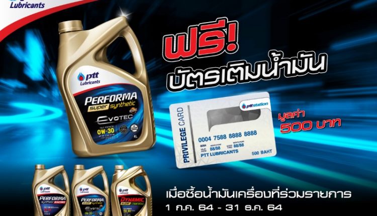 ซื้อน้ำมันเครื่อง PTT Lubricants รับฟรี! บัตรเติมน้ำมันมูลค่า 500 บาท