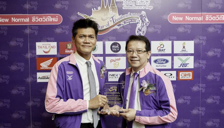 นายวิชิต ว่องวัฒนาการ กรรมการผู้จัดการ ฟอร์ด ประเทศไทย (ขวา) รับมอบโล่ประกาศเกียรติคุณจาก ดร. สาธิต ปิตุเตชะ รัฐมนตรีช่วยว่าการกระทรวงสาธารณสุข เนื่องในโอกาสที่ฟอร์ดมอบรถยนต์ 34 คัน เพื่อสนับสนุนการทำงานของคณะกรรมการจัดการแข่งขันจักรยานทางไกลนานาชาติ ‘ทัวร์ ออฟ ไทยแลนด์ 2020’ ชิงถ้วยพระราชทานสมเด็จพระกนิษฐาธิราชเจ้า กรมสมเด็จพระเทพรัตนราชสุดาฯ สยามบรมราชกุมารี ที่จะจัดขึ้นระหว่างวันที่ 6 ถึง 16 ตุลาคม 2563 นี้