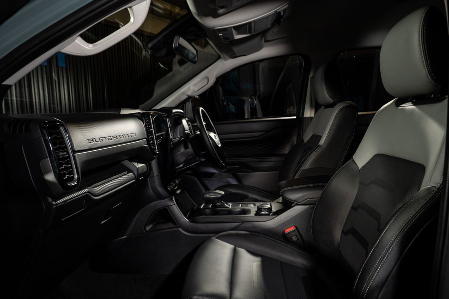 ·ห้องโดยสารภายใน ได้รับการออกแบบให้มีความสะดวกสบายและล้ำสมัย พร้อมความทนทานและสามารถรองรับการใช้งานจริงได้ ภายในตกแต่งด้วยสัญลักษณ์ ‘SUPER DUTY’ ที่แผงคอนโซลหน้า