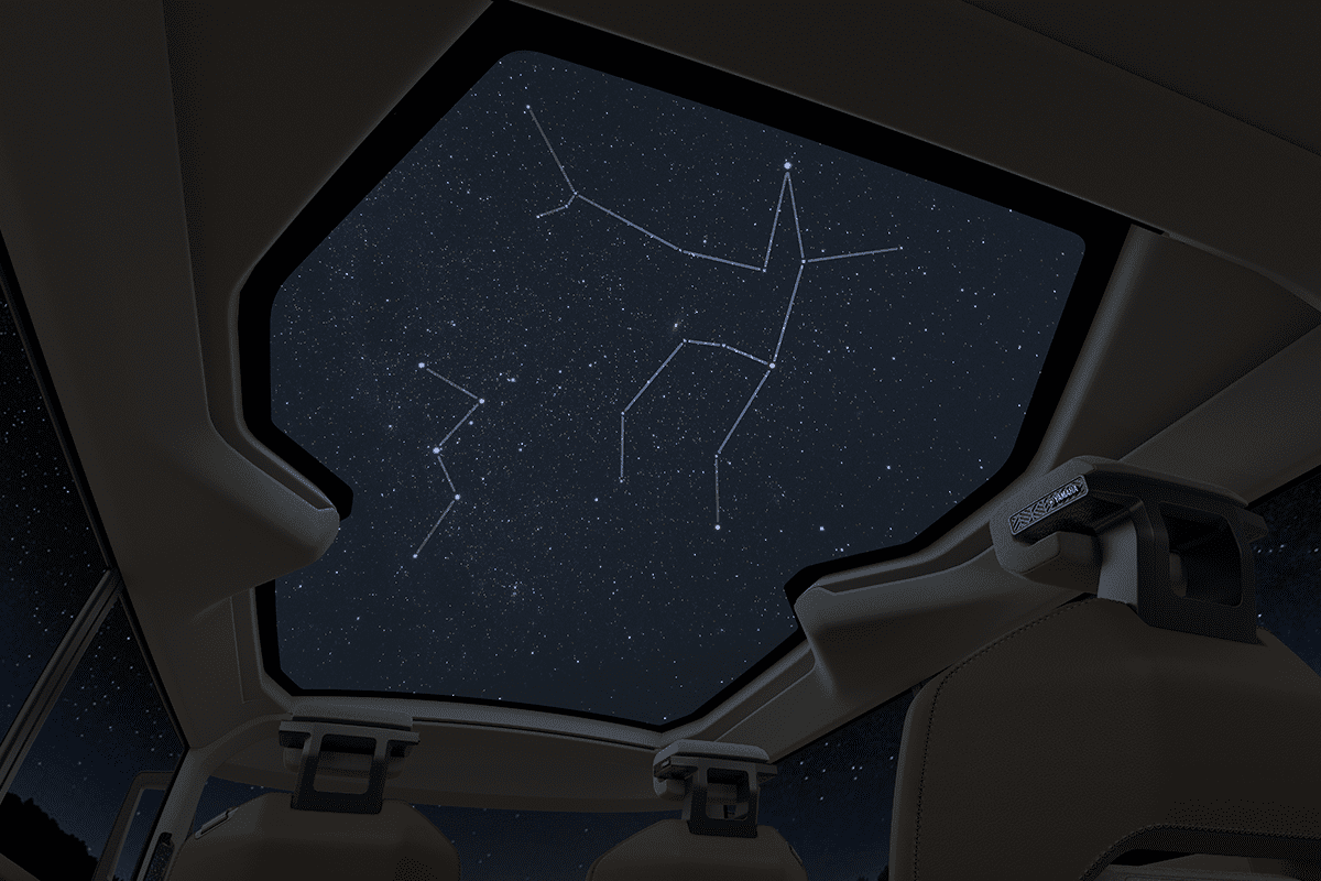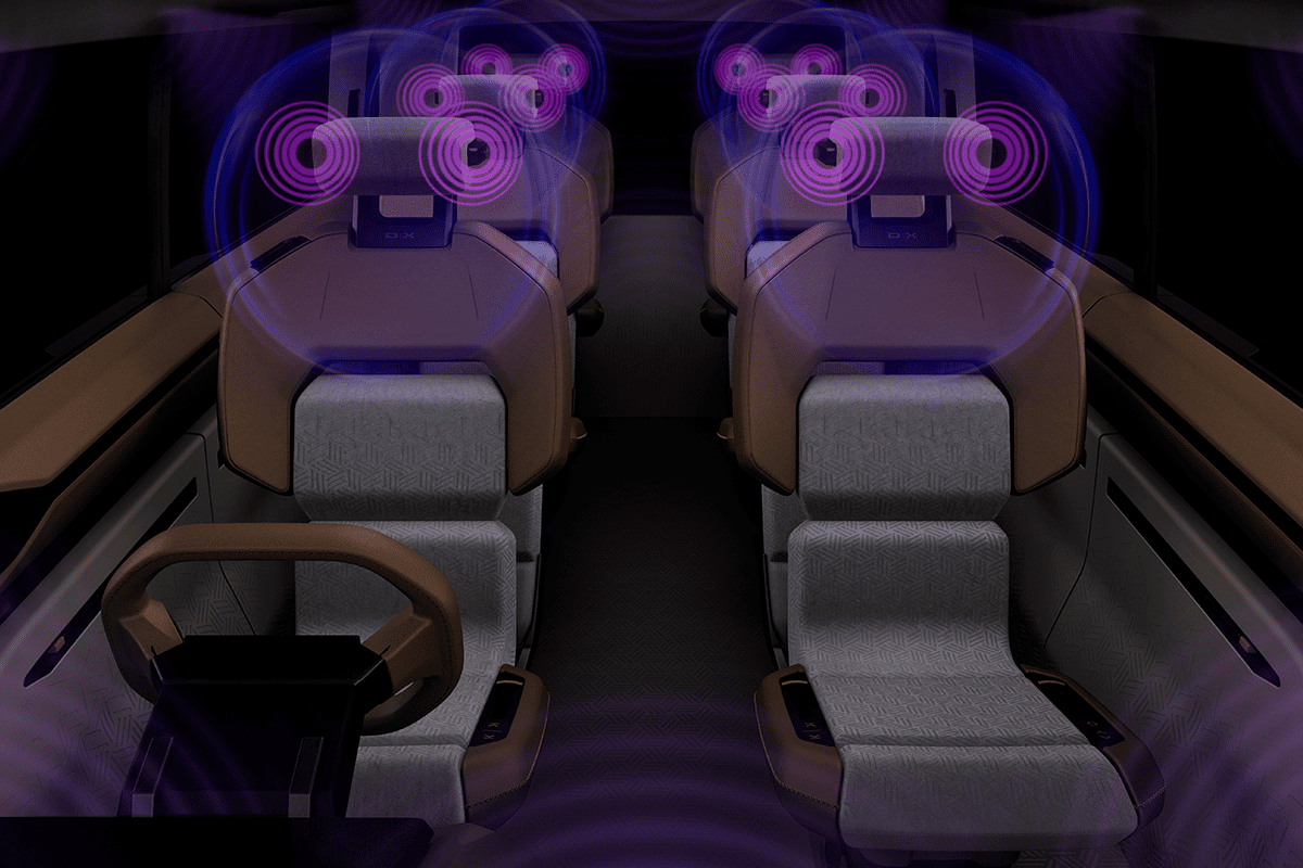 ห้องโดยสารของรถในรูปแบบ Monobox ถูกระบุว่ามีพื้นที่กว้างขวางสำหรับทุกคนในรถ โดยมีเบาะนั่ง Panoramic Seat ที่สามารถหมุนหรือเลื่อนขึ้น-ลงได้ และรถมาพร้อมกับพื้นที่ส่วนล่างของกระจกหน้าที่สามารถมองผ่านได้เพื่อให้ความรู้สึกที่เปิดโล่งและการสร้างค็อกพิตที่มีมุมมองกว้าง รวมไปถึงมีเอไอตอบโต้ด้วยเสียงสำหรับให้ข้อมูลเส้นทางไปสู่จุดหมาย สภาพอากาศ และข้อมูลอื่นๆ เพื่อให้ความปลอดภัยและประสบการณ์การขับที่ไร้ความเครียด