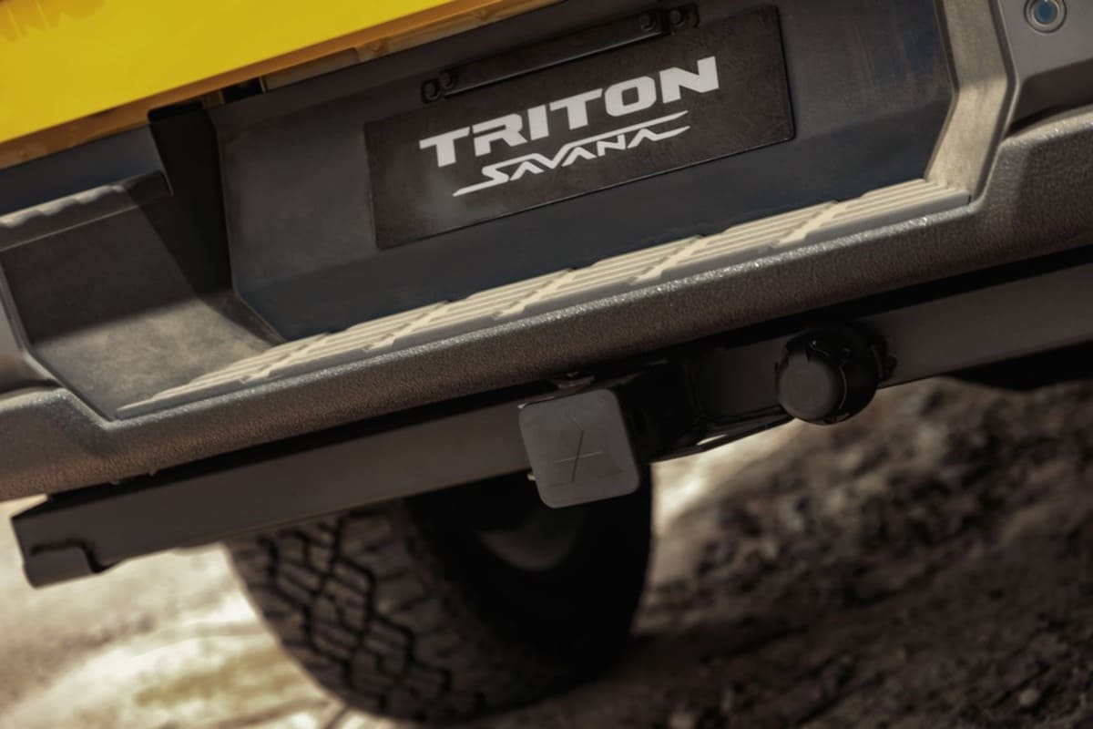 Mitsubishi Triton Savana ใช้พื้นฐานจากเกรด Katana ซึ่งเป็นเกรดแต่งสูงสุดที่บราซิล พร้อมกับเพิ่มอุปกรณ์ต่างๆ ทั้งเพื่อสร้างสไตล์แกร่งและเพิ่มความสามารถในการลุยให้กับรถ โดยเริ่มจากการมีสองสีให้เลือกสำหรับภายนอกรถ ระหว่างสีเหลือง Rally Yellow หรือสีเขียว Forest Green พร้อมเพิ่มความดุดันให้กับรูปลักษณ์ด้วยการมีกระจังหน้าและคิ้วแต่งรอบตัวรถสีเทา Graphite Gray Matte ซึ่งทางผู้ผลิตระบุว่าคิ้วแต่งบนตัวรถไม่เพียงเพิ่มความดุดันให้กับรถเท่านั้น แต่ยังสามารถป้องกันส่วนต่างๆ ที่สำคัญของรถจากเศษหินหรือความเสียหายเล็กๆ น้อยๆ ระหว่างลุยได้
