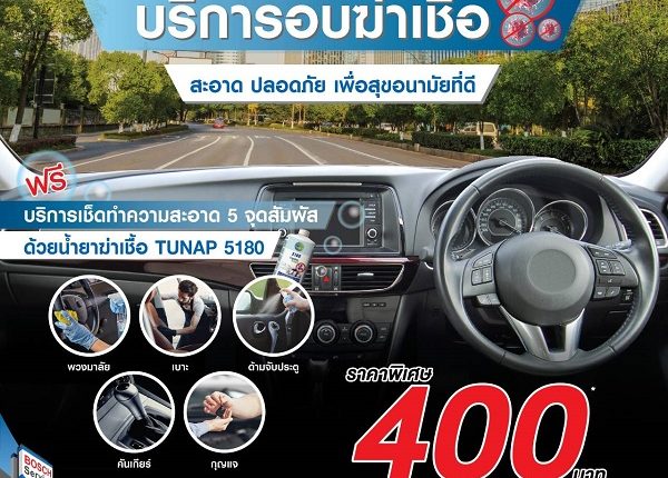 บริษัทมาสเตอร์ มอเตอร์ เซอร์วิสเซส (ประเทศไทย) หรือเอ็มเอ็มเอส บ๊อช คาร์ เซอร์วิส แอนด์ ไทร์ ศูนย์บริการรถยนต์ครบวงจรสำหรับรถญี่ปุ่น และยุโรปที่หมดระยะการรับประกัน ใส่ใจและห่วงใยในสุขภาพของลูกค้า มอบบริการพิเศษทำความสะอาดจุดสัมผัส ฆ่าเชื้อโรคในห้องโดยสาร ด้วยผลิตภัณฑ์คุณภาพสูงจากทูนแนป (TUNAP) ประเทศเยอรมนี ฟรี! สำหรับลูกค้าที่มาใช้บริการตลอดเดือนพฤษภาคม