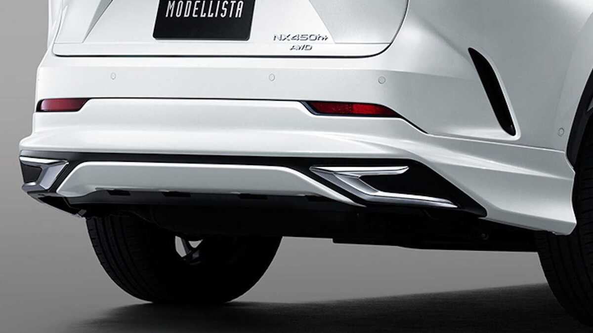 การเปิดตัวชุดแต่ง Modellista สำหรับ 2022 Lexus NX ประกอบไปด้วย ส่วนเสริมของกันชนหน้าแบบใหม่ที่ได้รับการตกแต่งด้วยสเกิร์ตหน้า ด้านข้างประตูและกันชนหลัง รวมถึงยังมีขอบคิ้วประตูสีโครเมียม นอกจากนี้ Modellista ยังได้เสริมชุดล้ออลูมิเนียมขนาด 20 นิ้ว ทำให้เจ้า Lexus NX ดูหรูหรามากขึ้นไปอีกขั้น