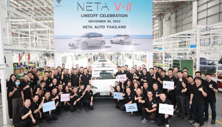 ” NETA ประกาศพร้อมผลิตรถยนต์พลังงานไฟฟ้า 100% ในไทยไตรมาสแรกปี 2567 ส่ง NETA V-II รถยนต์พลังงานไฟฟ้า 100% คันแรก ออกจากสายพานการผลิตจากโรงงานในประเทศไทย”