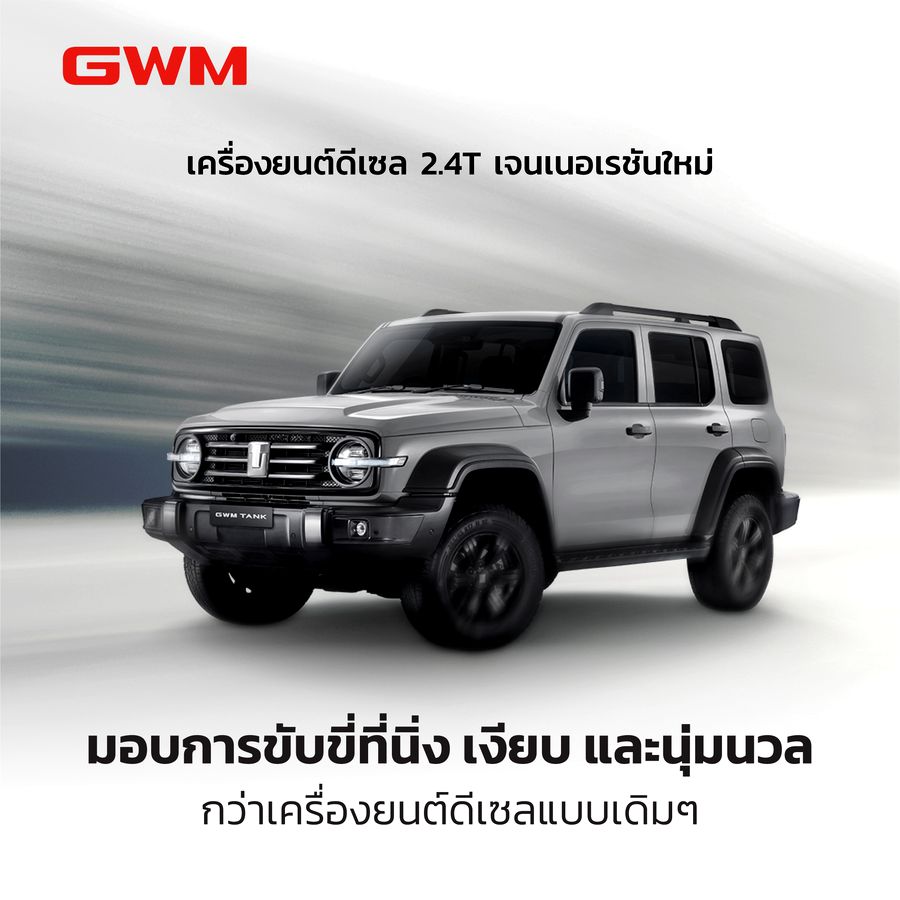 GWM (Thailand) พร้อมยกระดับสู่การเป็นแบรนด์รถยนต์ ที่มีผลิตภัณฑ์ครอบคลุมทุกประเภทพลังงาน เผยนวัตกรรมใหม่กับ “ขุมพลังเครื่องยนต์ดีเซล 2.4T เจนเนอเรชันใหม่ล่าสุด” พร้อมเกียร์อัตโนมัติ 9 สปีด ใน NEW GWM TANK 300 DIESEL เพื่อมอบประสบการณ์การขับขี่ที่ดียิ่งขึ้น