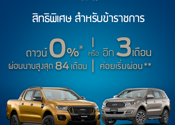 นอกจากนี้ฟอร์ด ยังมอบข้อเสนอสุดพิเศษสำหรับข้าราชการ เมื่อซื้อรถฟอร์ด เรนเจอร์ ใหม่ หรือฟอร์ด เอเวอเรสต์ ใหม่ ทุกรุ่น สามารถเลือกรับสิทธิพิเศษ ดังนี้
