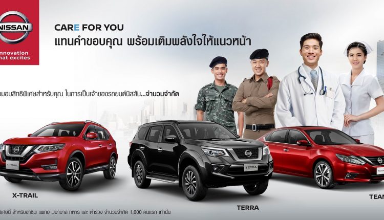 นิสสัน มอบข้อเสนอรถยนต์กลุ่มพรีเมียมราคาพิเศษ 3 รุ่น สำหรับบุคลากรทางการแพทย์ และกลุ่มลูกค้าอาชีพพิเศษ ภายใต้โครงการ “Care For You แทนความห่วงใยจากนิสสัน” เพื่อสนับสนุนบุคลากรผู้ปฏิบัติหน้าที่สำคัญในช่วงการระบาดของไวรัสโควิด-19