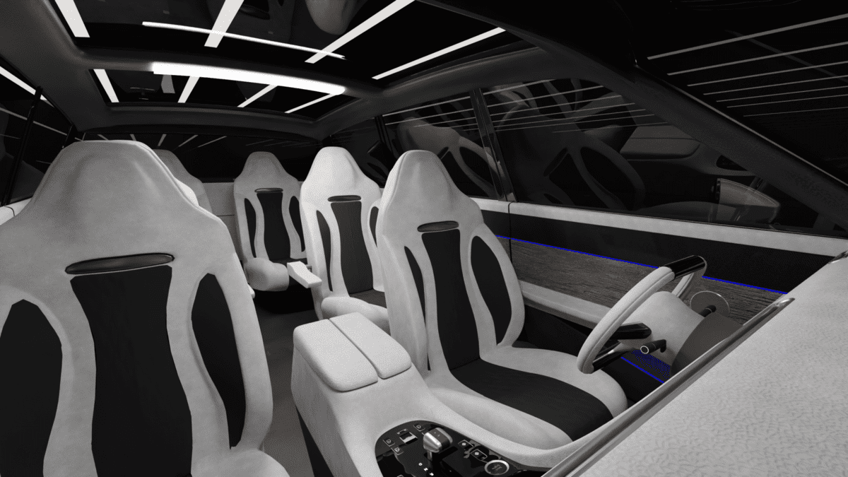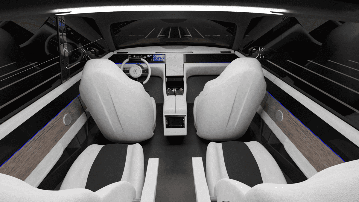 ส่วนห้องโดยสารของรถมาพร้อมกับเบาะ 3 แถว 6 ที่นั่ง โดยเบาะแต่ละตัวแยกจากกัน พร้อมให้ความล้ำหน้าด้วยพวงมาลัยทรงเหลี่ยม จอแสดงข้อมูลการขับที่ยาวเต็มด้านหน้าผู้ขับ และจอตรงกลางแนวตั้งขนาดใหญ่ ขณะที่ด้านหลังคอนโซลกลางมีจอขนาดเล็กสำหรับให้ผู้โดยสารในเบาะแถวที่สองปรับตั้งการทำงานต่างๆ ส่วนการแต่งในห้องโดยสารมีการใช้ทั้งไม้และคาร์บอนไฟเบอร์