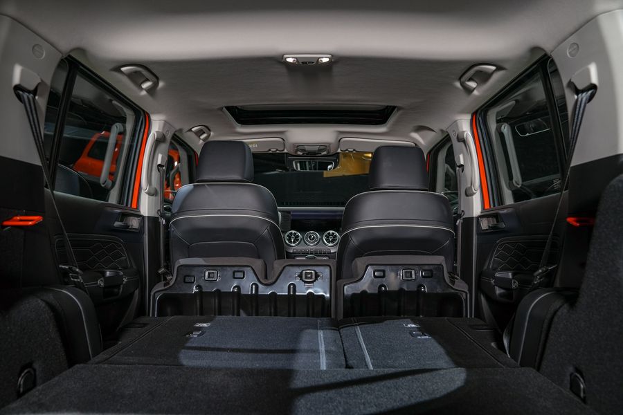 มิติตัวถังกว้าง 1,930 x ยาว 4,760 x สูง 1,903 มม. ระยะฐานล้อ 2,750 มม. ทำให้ภายในห้องโดยสารกว้างขวาง รองรับคนตัวสูง 180 ซม. ได้สบาย ดูใหญ่กว่ารถเอสยูวีบางค่ายอีกด้วย ดีไซน์ภายในถือว่าทำได้ดูแพง อาจจะรู้สึกคล้ายรถยุโรปบางยี่ห้องอยู่บ้าง ซึ่งโดยรวมถือว่าออกแบบมาได้น่าสนใจ มีไฟ Ambient lighting ที่ปรับได้ 64 เฉดสี ชุดคอนโซลทำได้น่าสนใจ มีนาฬิกาแบบ Analog คลาสสิกติดตั้งอยู่ตรงกลาง ถัดลงมาเป็นชุดเกียร์ Electric Shifter 9 สปีด ที่ดีไซน์ได้ล้ำสมัยดีมาก เบาะนั่งปรับไฟฟ้าได้ 8 ทิศทาง มีระบบกรองอากาศ PM2.5 ลำโพงเกรดดี Infinity 8 ตำแหน่ง มีที่ชาร์จสมาร์ทโฟนแบบไร้สาย มีช่องจ่ายไฟสำรอง 220V พร้อมเต้ารับสายไฟ Universal ช่อง USB สำหรับผู้โดยสารตอนหน้าและหลัง และมีเอาไว้สำหรับติดกลอ้งบันทึกภาพหน้ารถ