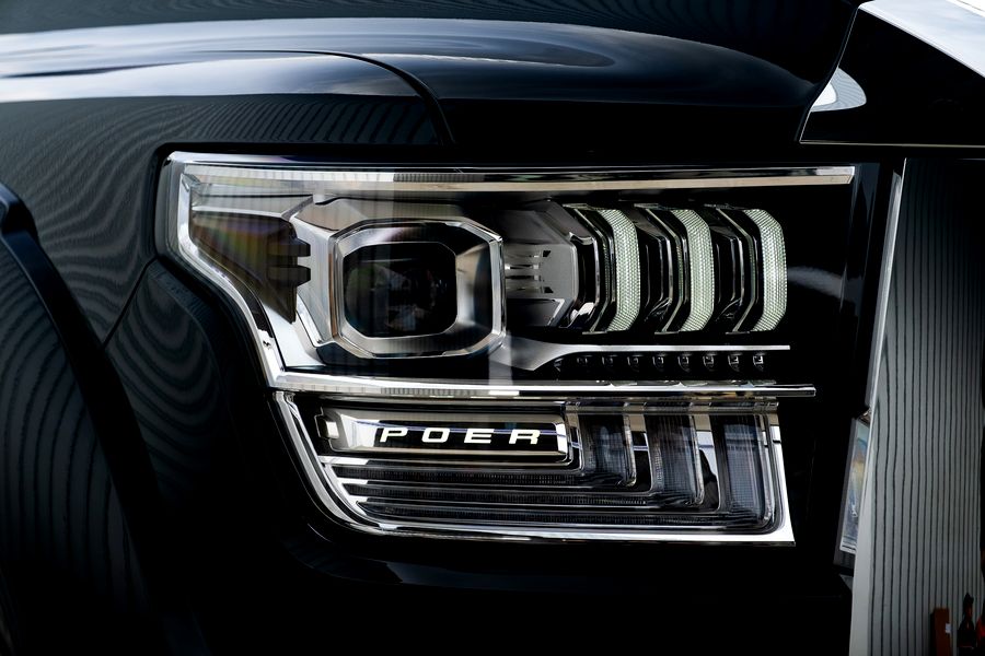 มิติตัวถัง ยาว 5,445 มม. กว้าง 1,991 มม. สูง 1,924 มม. ระยะฐานล้อ 3,350 มม. ยาวที่สุดในตลาดรถกระบะในปัจจุบัน มีดีไซน์ด้านหน้าที่ตกแต่งด้วยกระจังหน้าโครเมียมดีไซน์เรียบหรู, ไฟหน้า Intelligent LED พร้อมระบบเปิด-ปิดไฟหน้าอัตโนมัติ, ระบบปรับไฟสูง-ต่ำอัตโนมัติ, ฟังก์ชั่นหน่วงเวลาไฟส่องทางหลังดับเครื่อง พร้อม Daytime Running Light ไฟตัดหมอกแบบ LED รวมทั้งเพิ่มจุดเด่นด้วยโลโก้ POER ที่สะท้อนตัวตนของการเป็นรถกระบะระดับพรีเมียม