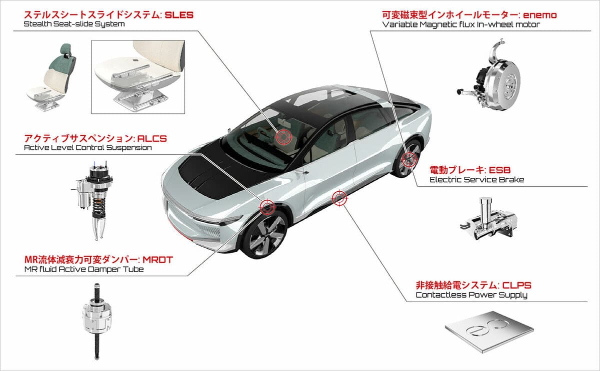 ทางผู้ผลิตชิ้นส่วนรถยนต์ยังระบุว่ารถคอนเซ็ปต์ของตนมีระบบควบคุมการเลี้ยว 4 ล้อ เบรกไฟฟ้า และช่วงล่างแปรผันซึ่งใช้แดมเปอร์ MR Fluid Active Damper