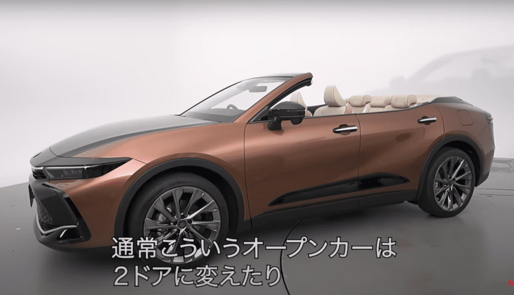 รายละเอียดของ Toyota Crown Crossover เปิดประทุนที่ทำออกมาเพียงคันเดียวในโอกาสพิเศษถูกเผยแพร่รายละเอียดในวิดีโออย่างเป็นทางการโดย Toyota Times ซึ่งแสดงให้เห็นว่าตัวถังส่วนล่างของรถยังคงของเดิมเอาไว้ แต่นำเอาเสาและหลังคารถออกไป ทำให้ยังคงเป็นรถ 4 ประตูเหมือนเดิม อย่างไรก็ตามบริเวณด้านหลังของรถถูกออกแบบใหม่โดยใช้วัสดุสีดำเพื่อแทนที่กระจกหลังของรถที่หายไป
